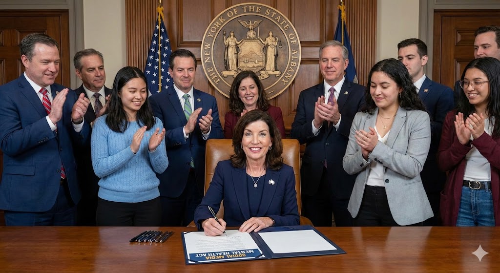 “Our children are being targeted by predatory algorithms designed to keep them hooked at the expense of their mental health,” Hochul stated during the signing ceremony. “By requiring these labels, we are finally pulling back the curtain on the harms of these platforms and giving parents the tools they need to protect their kids.”